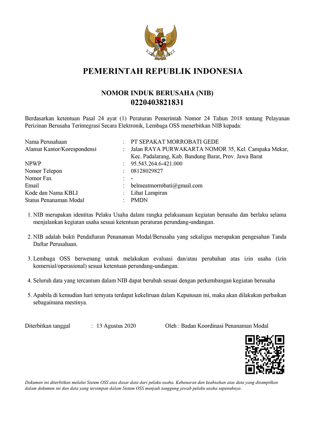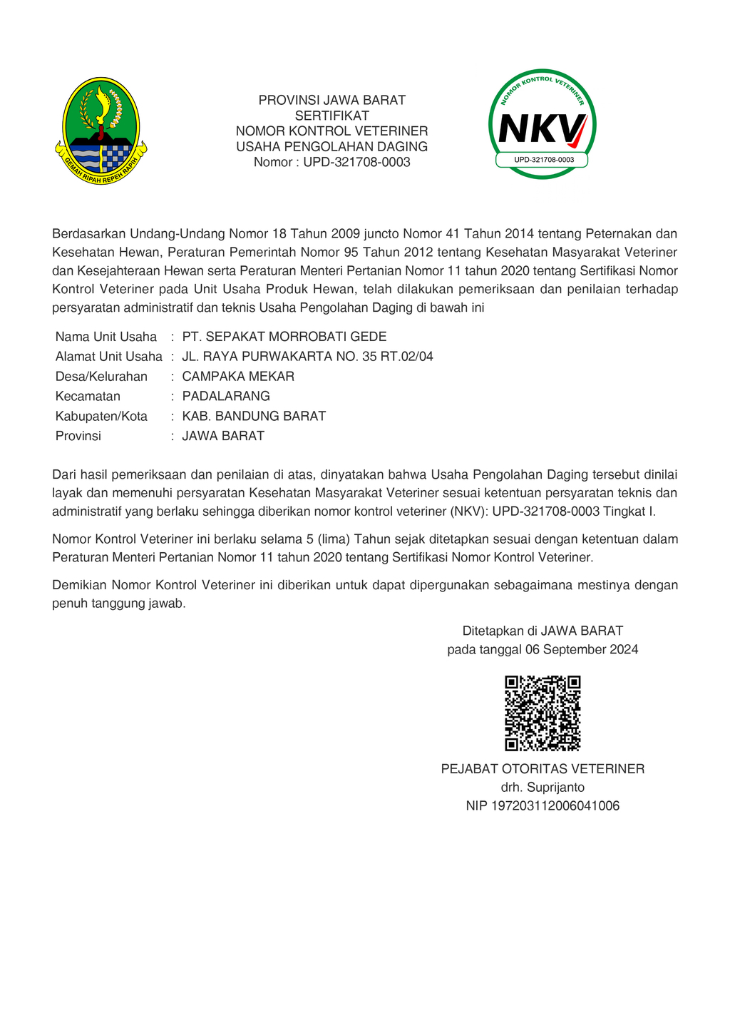 PT. Sepakat Morrobati Gede didirikan pada tahun 2020 dan berfokus pada pemotongan, produksi, serta penjualan daging yang bersumber dari sapi hidup lokal, sapi hidup impor, serta daging ayam. Lokasi perusahaan kami berada di Jl. Raya Purwakarta No. 35, Kel. Cempaka Mekar, Kec. Padalarang, Kab. Bandung Barat, Jawa Barat.