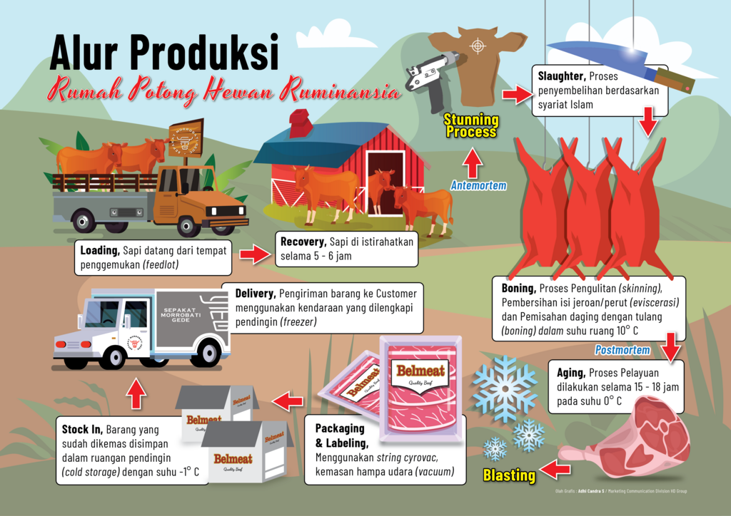 1.  Menyalurkan produk daging ke masyarakat melalui berbagai macam pasar, baik pasar tradisional maupun pasar modern (supermarket) dengan integritas sebagai prinsip kerja.